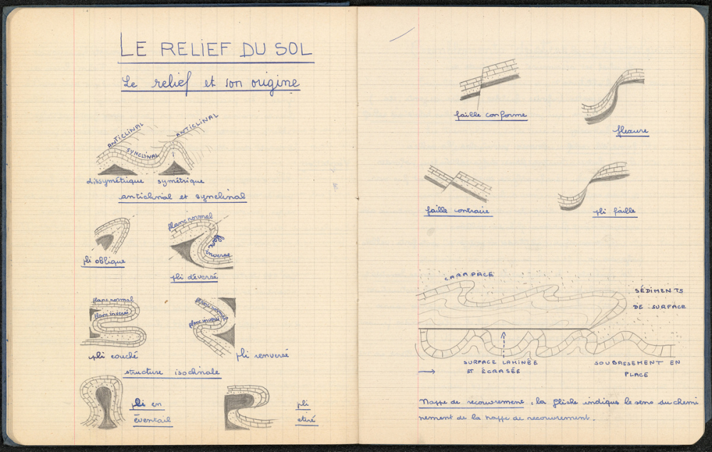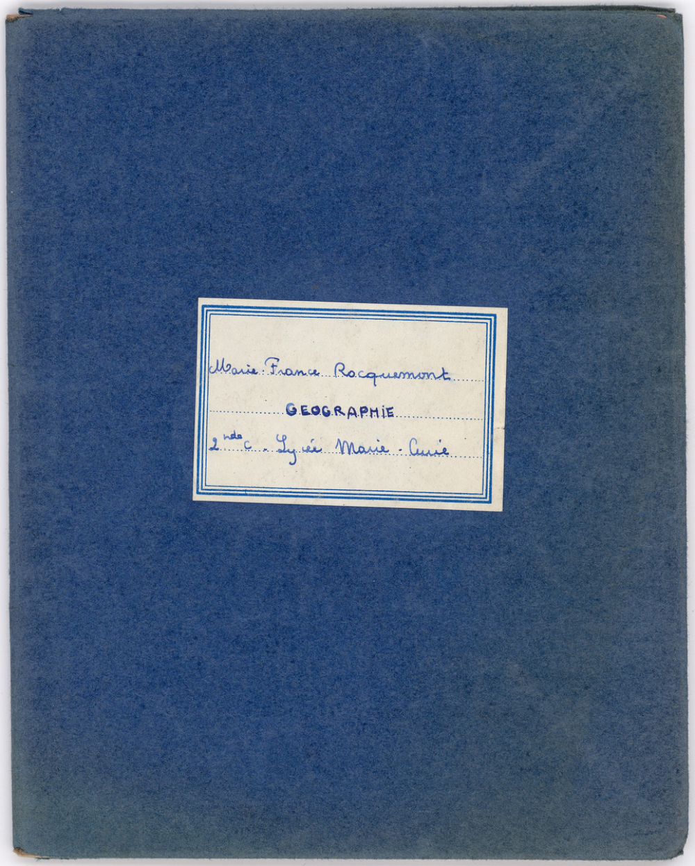 Notes : Il s'agit du cahier de Géographie de Marie-France Rocquemont (épouse Morel), élève alors scolarisée au lycée Marie Curie de Sceaux (Hauts de Seine, ex-Seine) en classe de 2nde C (A'CC'), durant l'année 1956-1957.