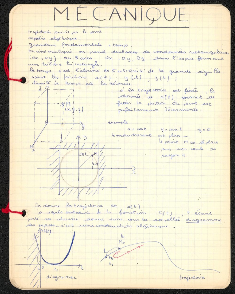 Notes : Il s'agit du cahier de Mécanique de Marie-France Rocquemont (épouse Morel), élève alors scolarisée au lycée Marie Curie de Sceaux (Hauts de Seine, ex-Seine) en classe de Terminale série Mathématiques élémentaires, durant l'année 1958-1959.