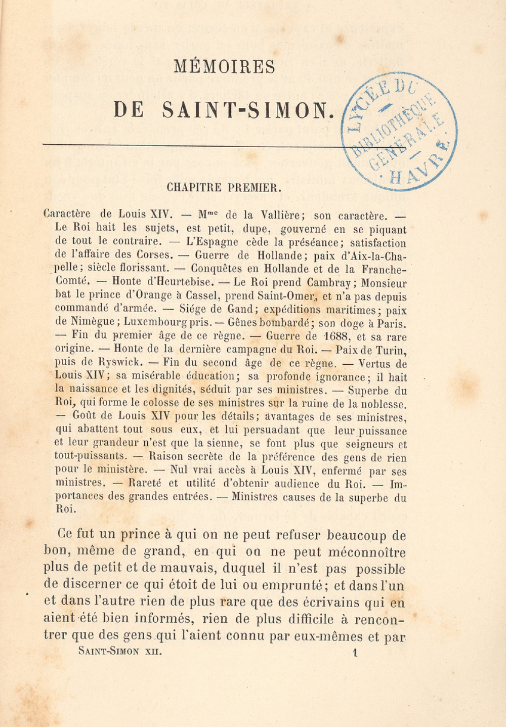 • tampon : Lycée du Havre : Bibliothèque générale : Section Série : N°2254(faux-titre)