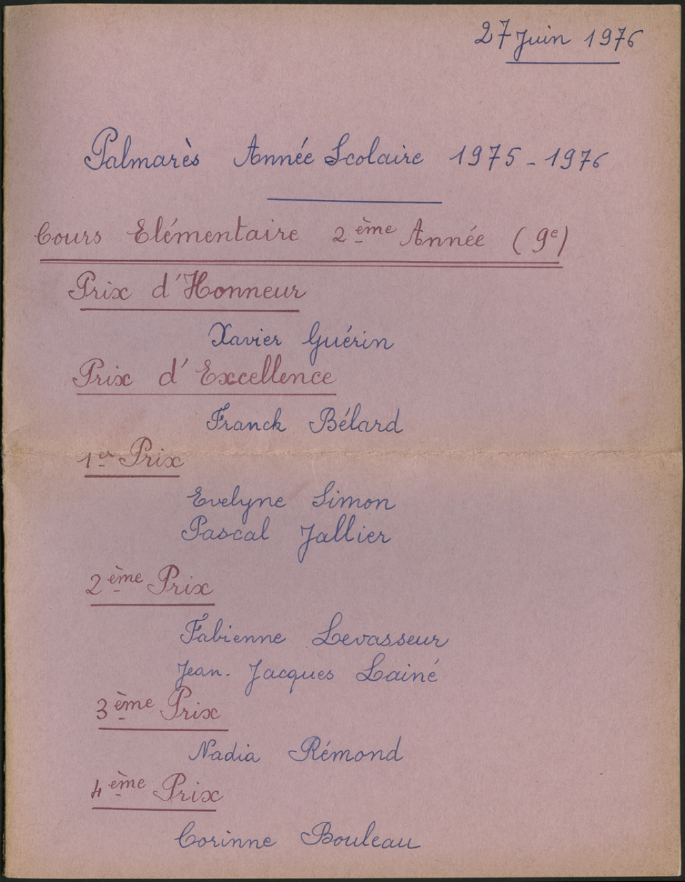 Palmarès de l'année scolaire 1975-1976 - Distribution des Prix - 27 juin 1976