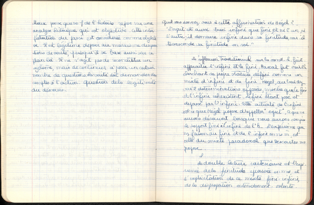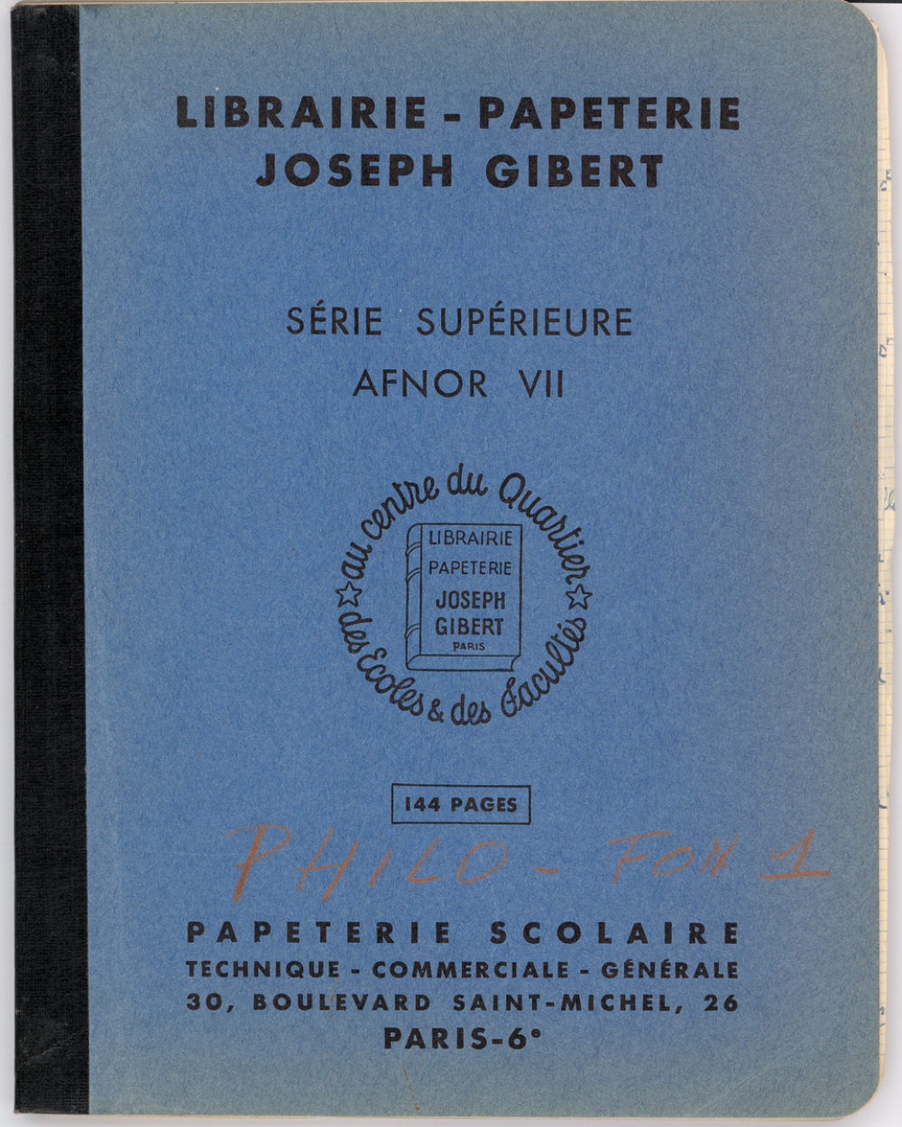 Notes : Cahier de Philosophie de Martine Leroy-Bouveyron (née Leroy) alors âgée de 19 ans, élève de classe préparatoire Fontenay, au lycée Claude Monet à Paris (XIIIe arrondissement), durant les années 1966 à 1968.