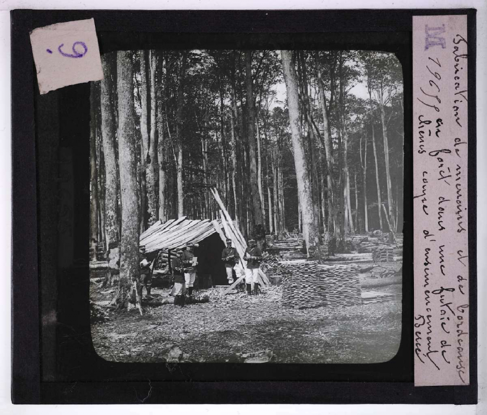 Produits des forêts. Fabrication de merrains et de bordeaux en forêt dans une futaie de chênes. Coupe d'ensemencement.