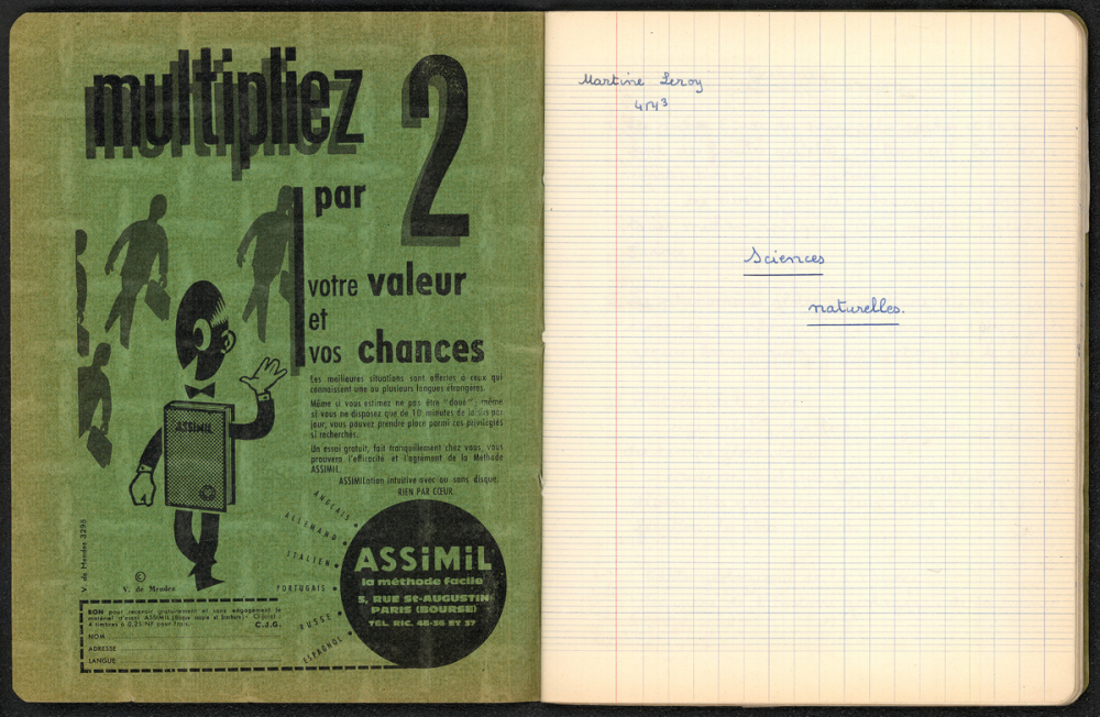 Notes : Cahier de sciences de Martine Leroy-Bouveyron (née Leroy) alors âgée de 13- 14 ans, élève de 4e M2, au Lycée Victor Duruy à Paris (VIIe arrondissement), durant l'année 1961 à 1962.