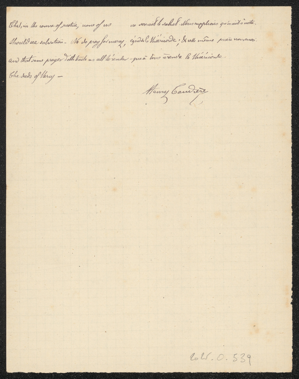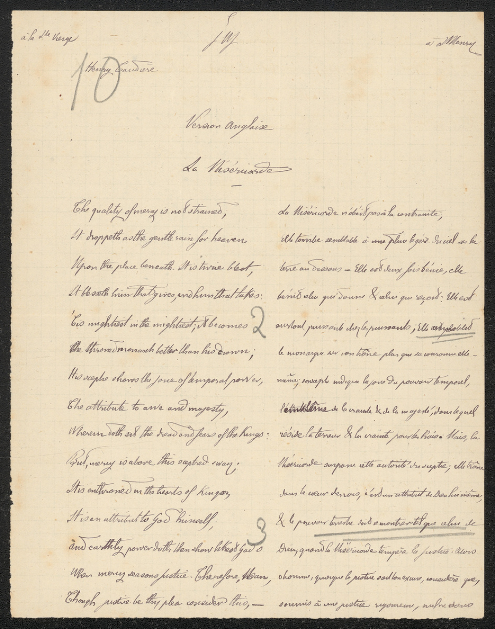 Notes : Il s'agit d'une copie de version anglaise de l'élève Henri Taudière, scolarisé au collège Saint-Joseph de Poitiers, probablement en Seconde durant l'année 1874 à 1875.