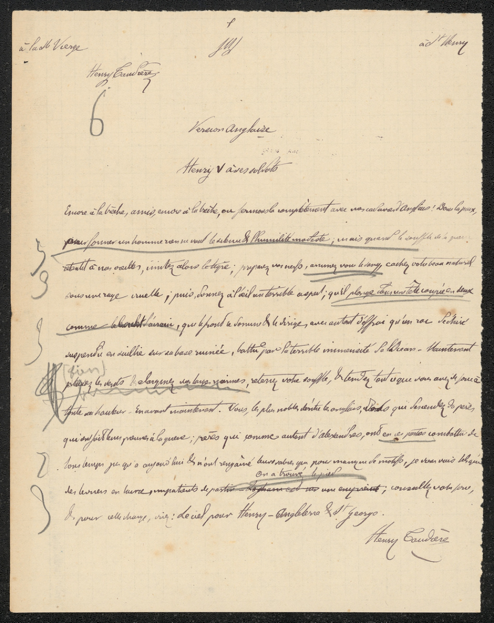 Notes : Il s'agit d'une copie de version anglaise de l'élève Henri Taudière, scolarisé au collège Saint-Joseph de Poitiers, probablement en Seconde durant l'année 1874 à 1875.
