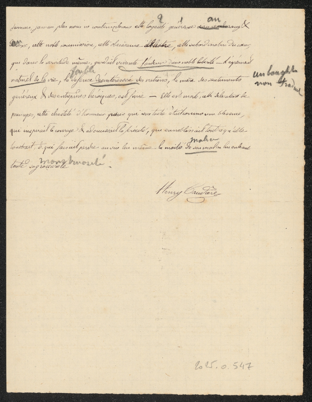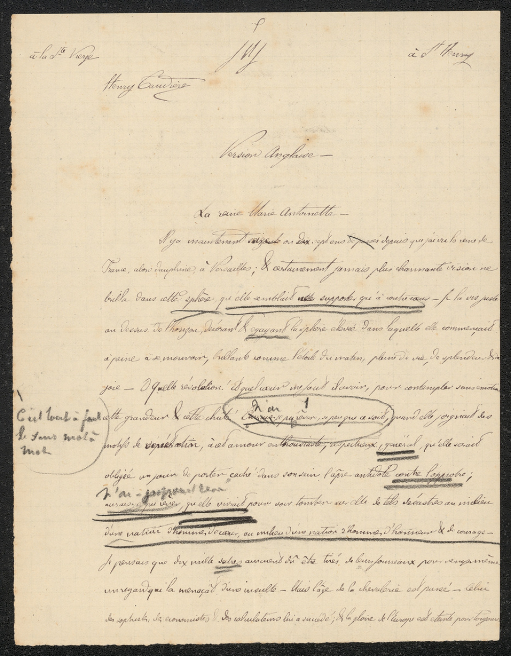 Notes : Il s'agit d'une copie de version anglaise de l'élève Henri Taudière, scolarisé au collège Saint-Joseph de Poitiers, probablement en Seconde durant l'année 1874 à 1875.