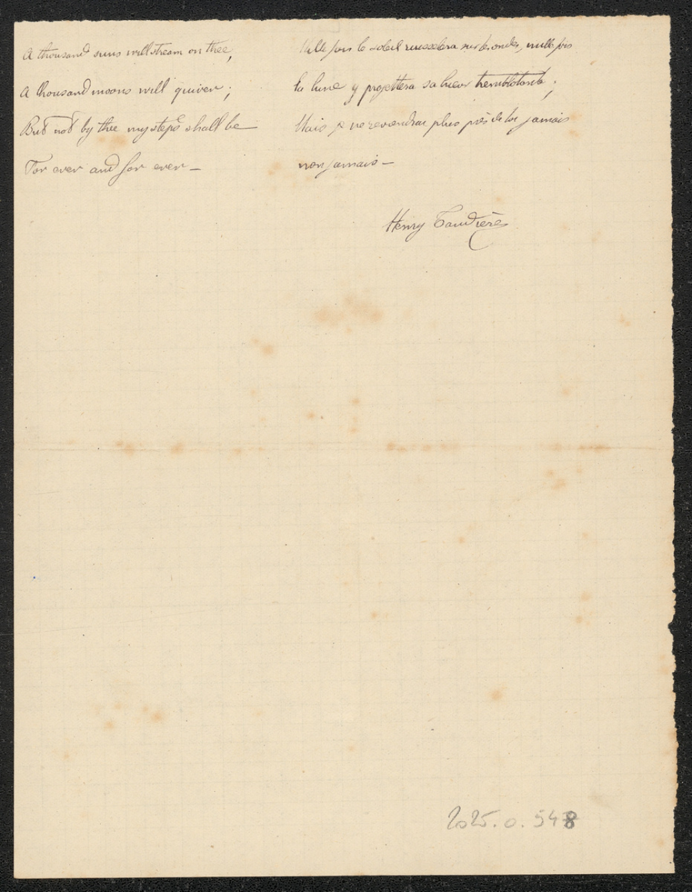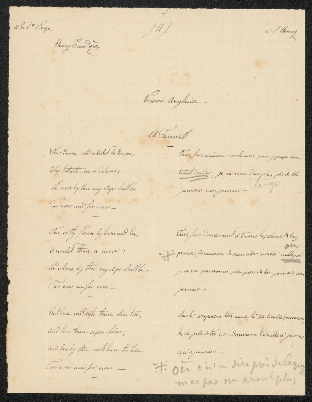 Notes : Il s'agit d'une copie de version anglaise de l'élève Henri Taudière, scolarisé au collège Saint-Joseph de Poitiers, probablement en Seconde durant l'année 1874 à 1875.