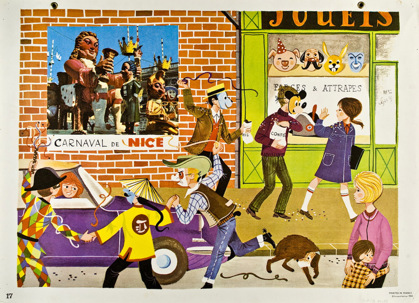 Pierre Verdet et Paul Furcy, Vive Carnaval, planche didactique, Paris, Fernand Nathan, coll. « Écrire et parler CE2 », 1966 (inv. 1986.00014.18).