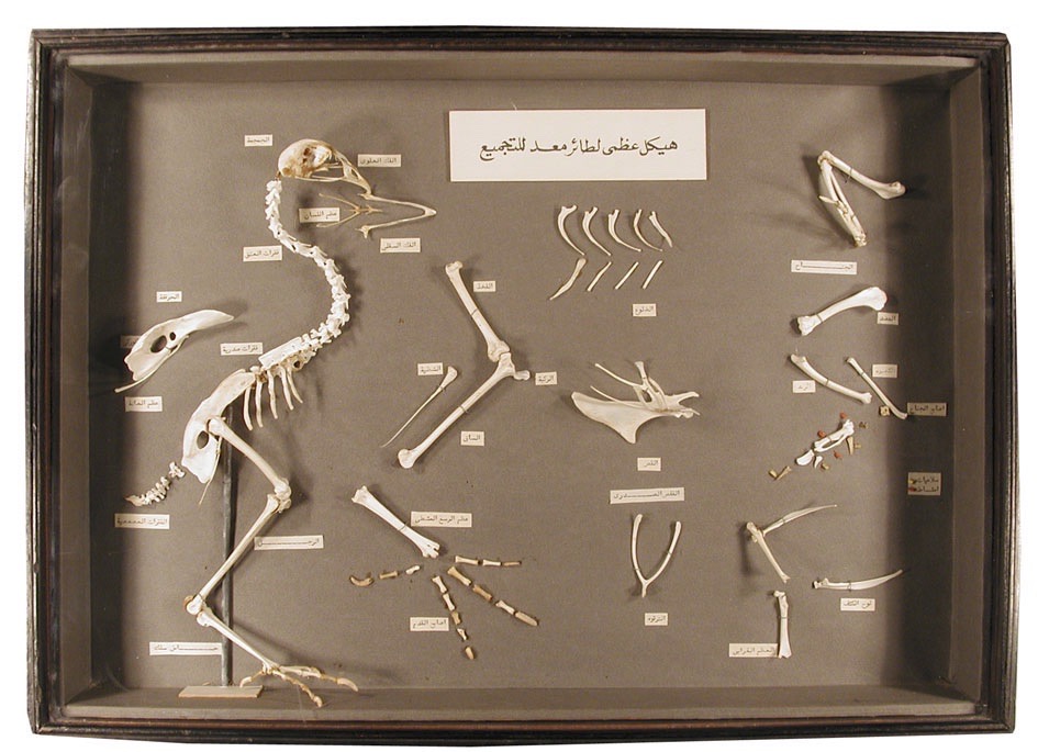 Boîte de présentation du squelette d’un oiseau arabe, (inv. 1979.33488).